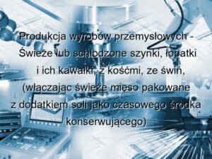 Produkcja wyrobów przemysłowych – Świeże lub schłodzone szynki, łopatki i ich kawałki, z kośćmi, ze świń, (włączając świeże mięso pakowane z dodatkiem soli jako czasowego środka konserwującego)